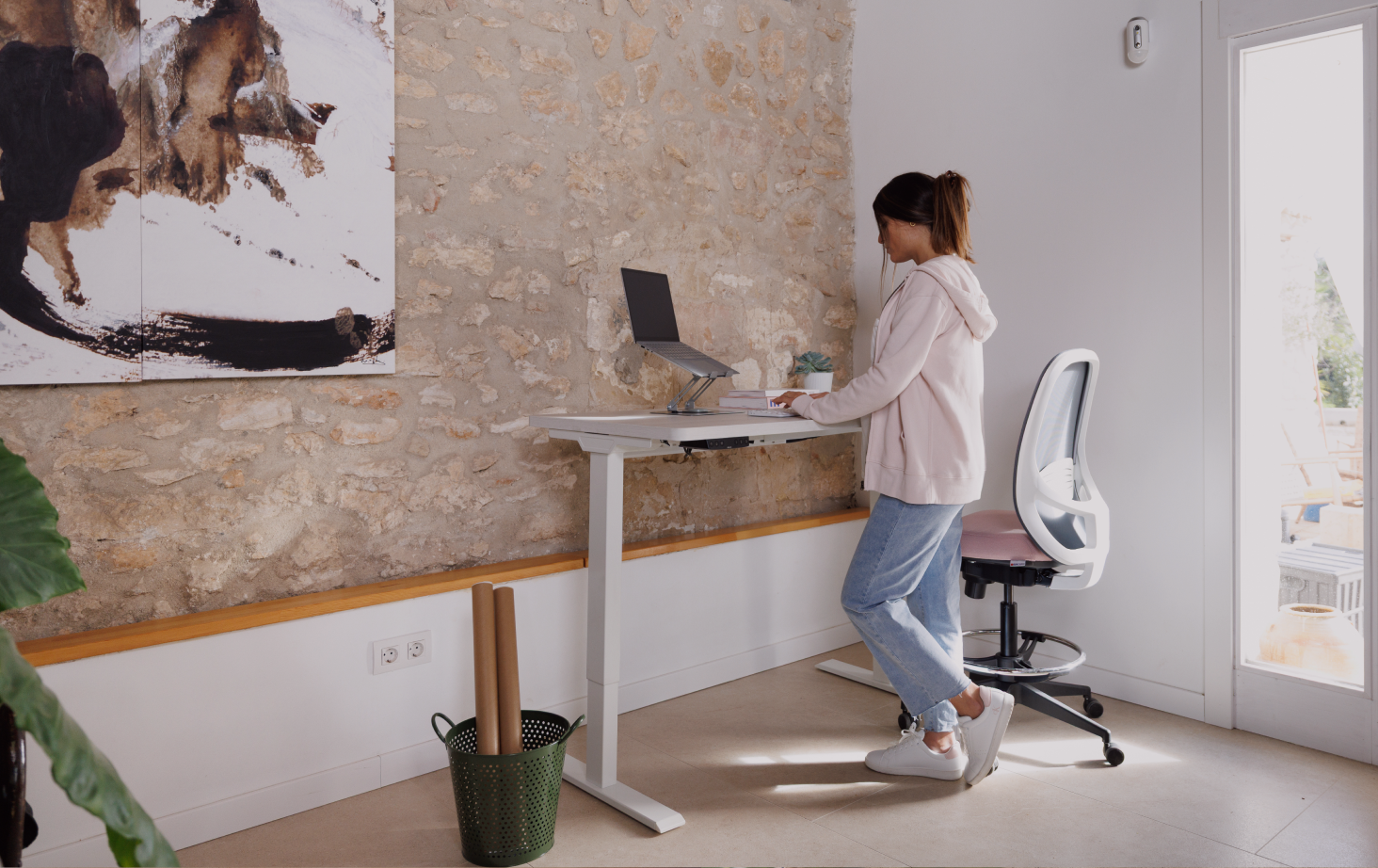 Estoy feliz con mi mesa de trabajo Eleva! Por fin me levanto de vez en cuando sin tener que dejar de trabajar. Paso muchas horas en el ordenador y ahora puedo estar a la altura que necesito en cada momento para activar mi cuerpo y eso se nota en mi energía y mi productividad! Y además es súper bonita. Un 10.