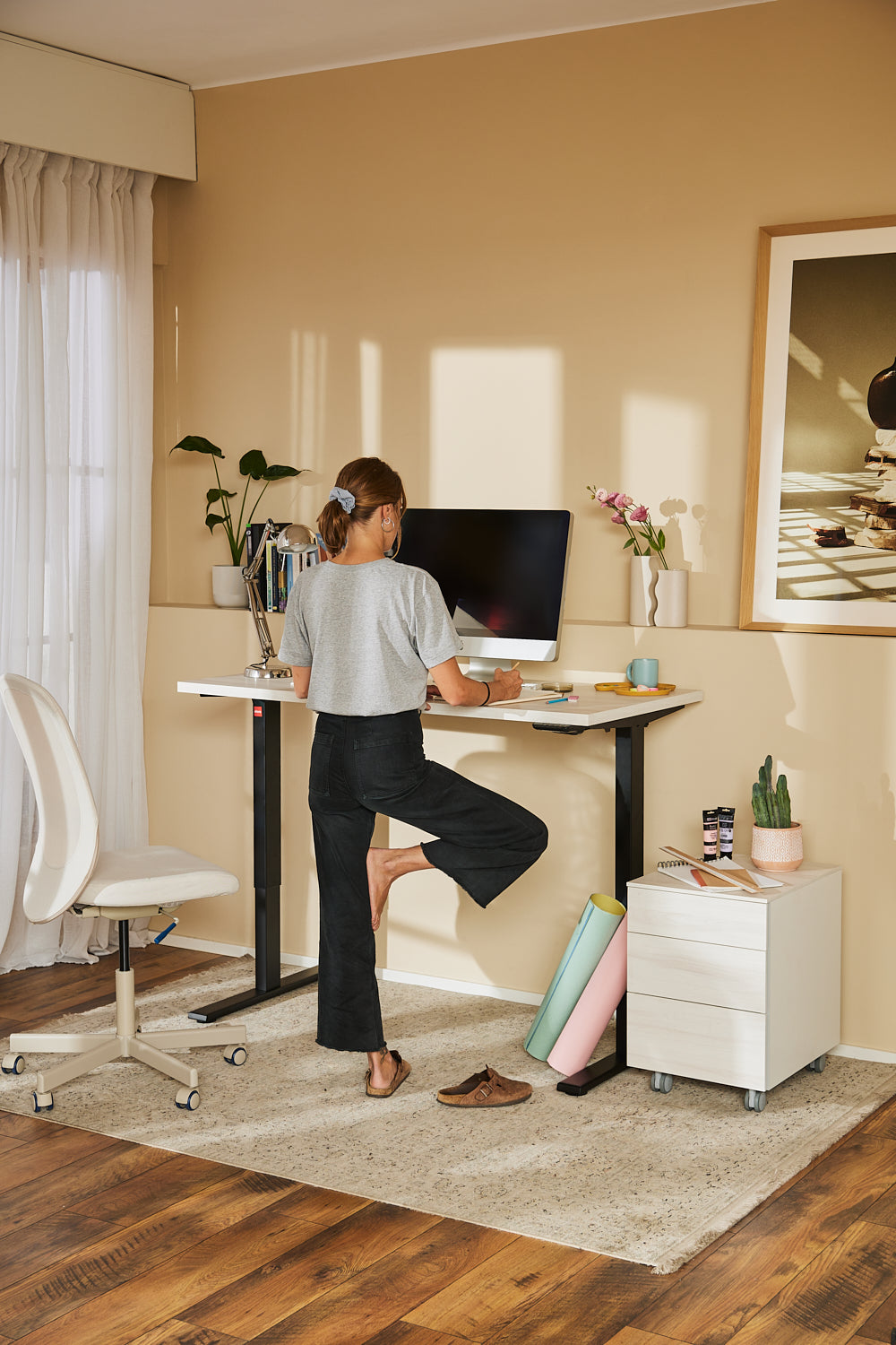 La mejor manera de aprovechar tu escritorio Eleva es creando un espacio de trabajo que inspire el movimiento y el bienestar. Accesorios como el soporte de pantalla o el soporte de portátil son elementos que pueden ayudarte en tu día a día, facilitando posturas ergonómicas que alivian la tensión de tu cuello.