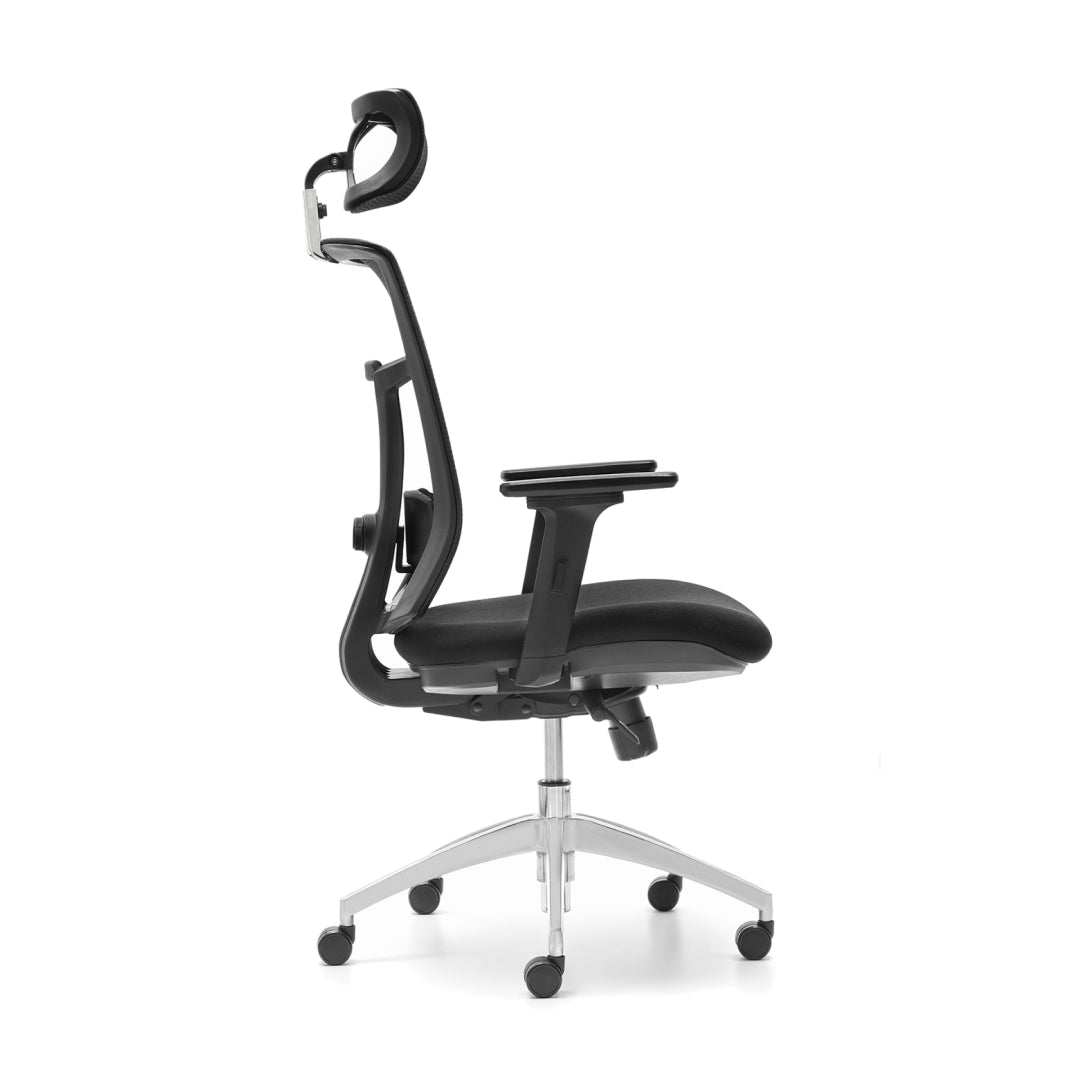 Siente una comodidad instantánea en cuanto te sientas. Una silla de trabajo de alto rendimiento y completamente ajustable a tu cuerpo. Con 4 posiciones de anclaje diferentes, para que te dejes caer en ella y la bloquees en el punto más cómodo posible. Un cabecero adaptado a ti y una zona lumbar acolchada que ajustas en altura y profundidad, para que encaje en el sitio exacto. Además, los reposabrazos tienen 7 posiciones de fondo y 3 posiciones de ángulo de brazos. Ajustables en altura y giratorios, para que los adaptes a tu espacio de trabajo.