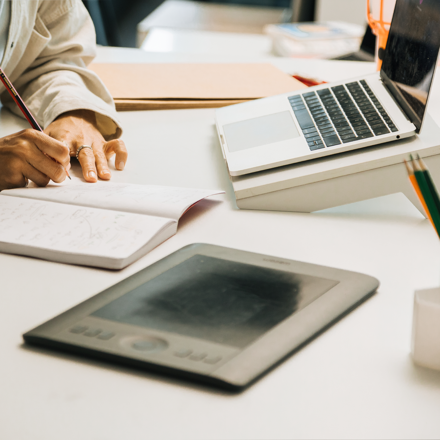 Además, el soporte Eleva libera un espacio de tu escritorio para mantenerlo ordenado y limpio.
